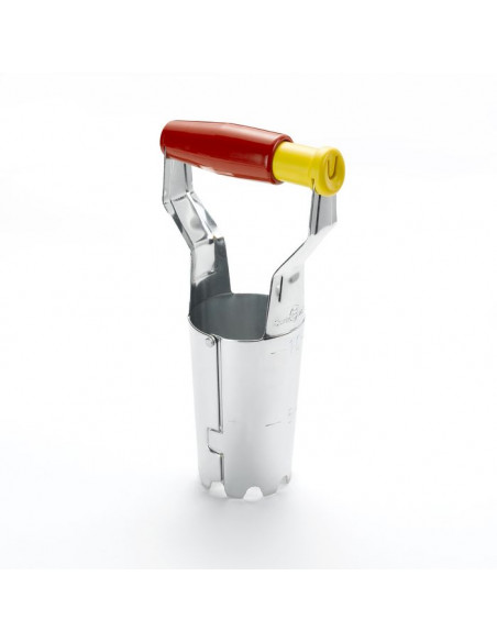 - La tierra cortada se queda en el plantador y luego se expulsa mediante una simple presión del pulgar en el puño para cubrir el plantón.