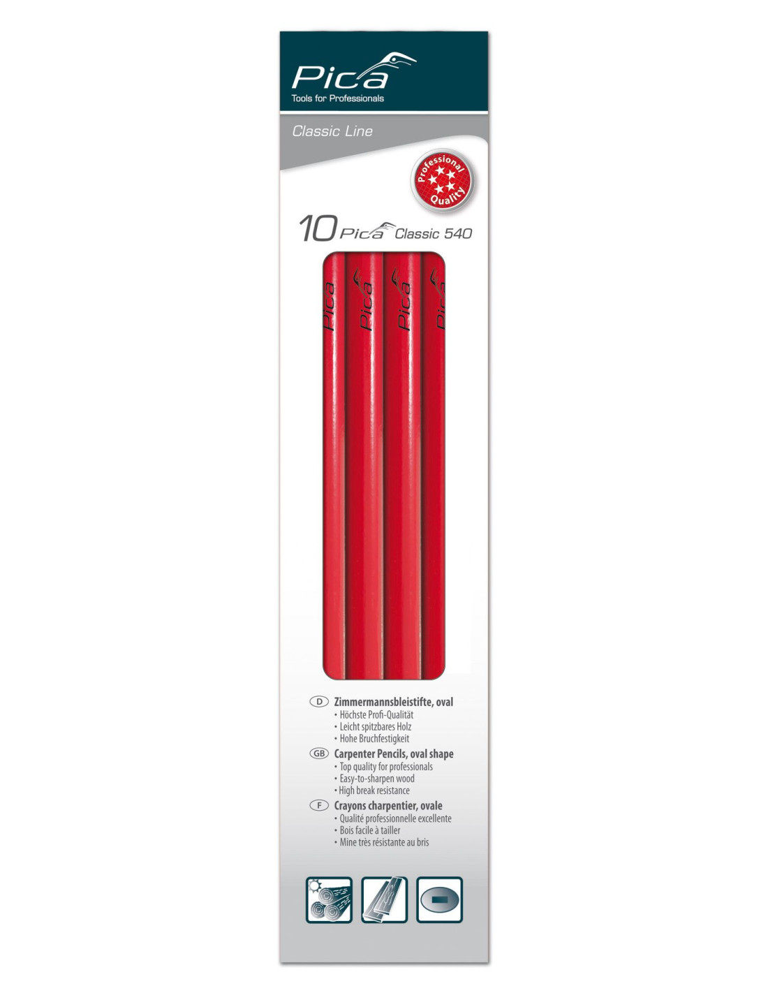 Caja con 10 lápices de carpintero perfil ovalado Classic 540