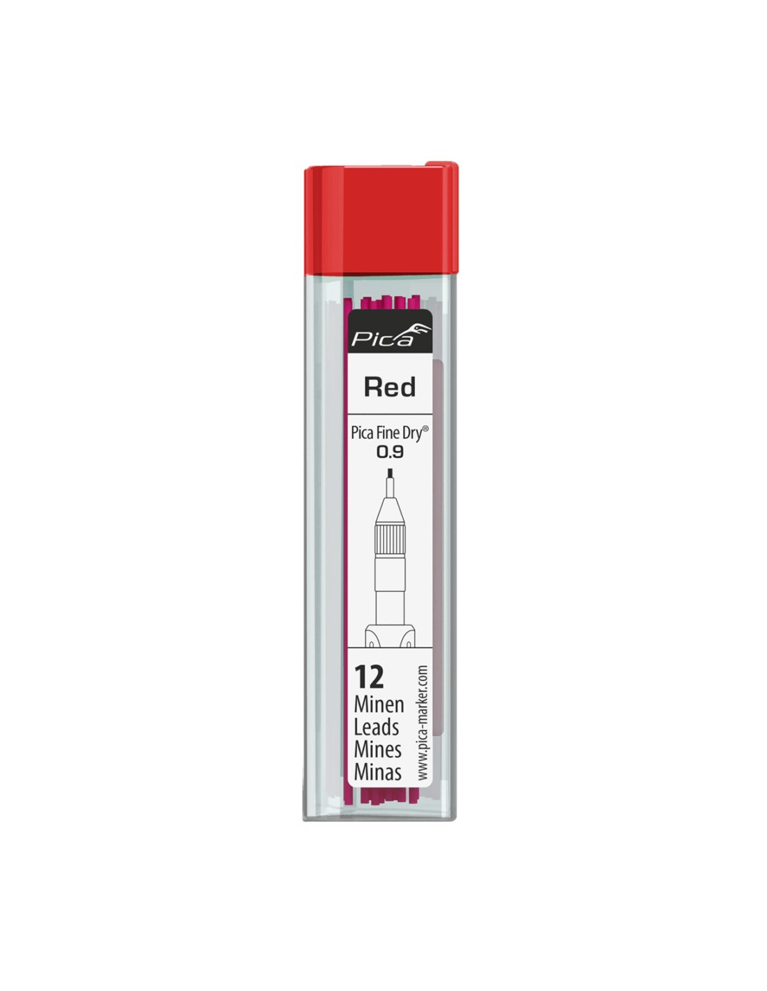Estuche de 12 minas rojas para portaminas Fine Dry