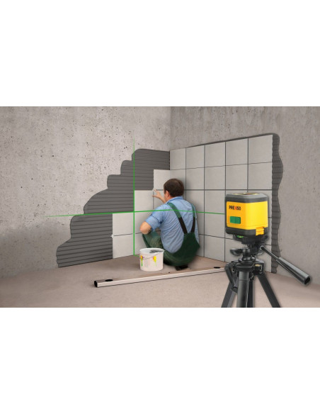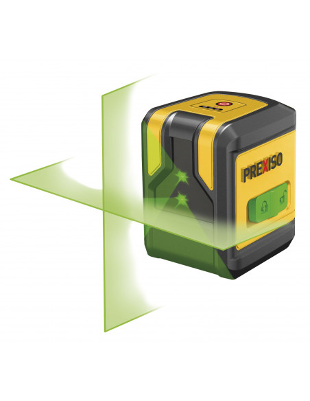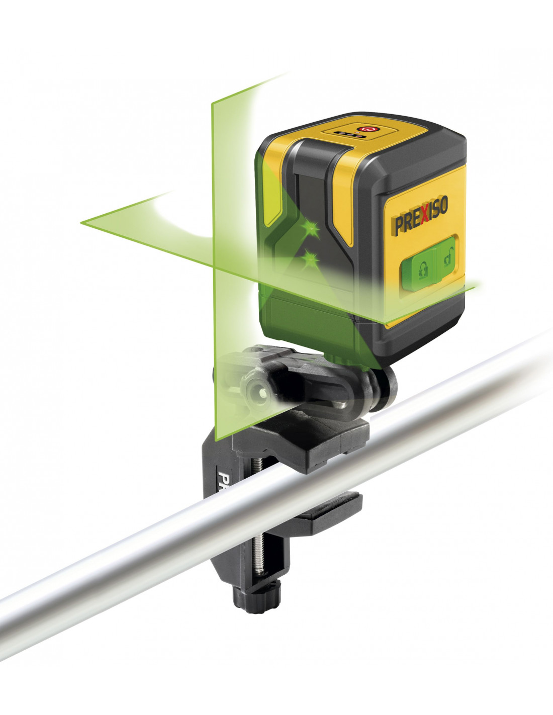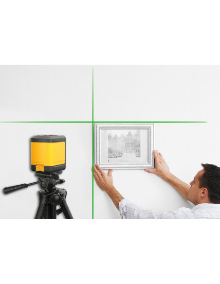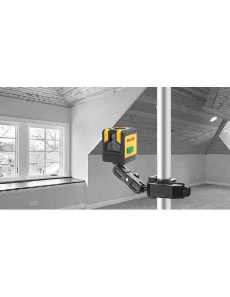 Nivel láser de líneas verdes horizontales, verticales y techo que se puede operar con un solo botón: selecciona fácilmente entre los modos de línea horizontal, vertical y cruz. Modo manual de bloqueo de la línea para establecer el nivel en cualquier ángulo deseado. Con tornillo de 6,35 mm (1/4") que permite montaje en pared o en trípode. Incluye pinza universal PAC.