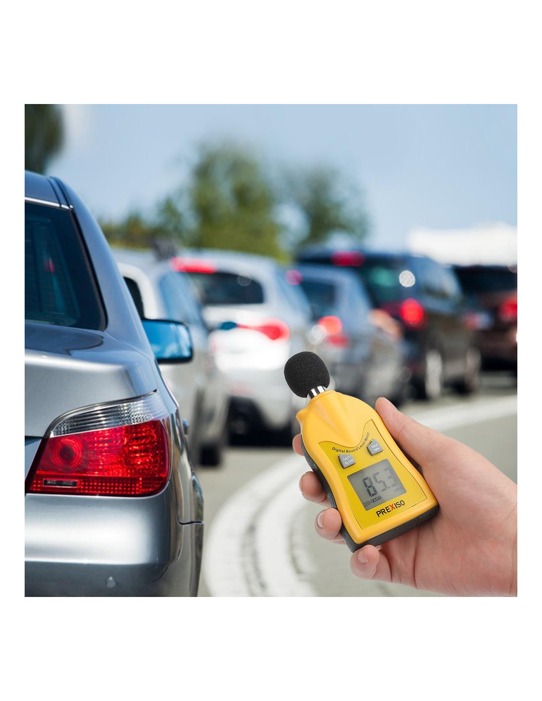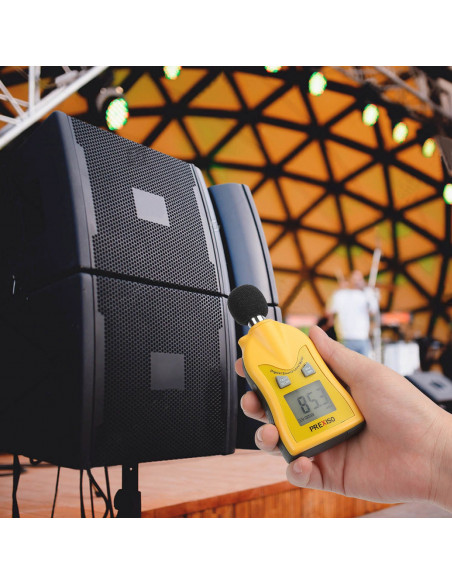 Perfecto para medir el nivel de ruido en fábricas, oficinas, teatros, etc. de muy fácil uso que incluye botón “HOLD” para bloquear las medidas, tanto mínima como máxima.
