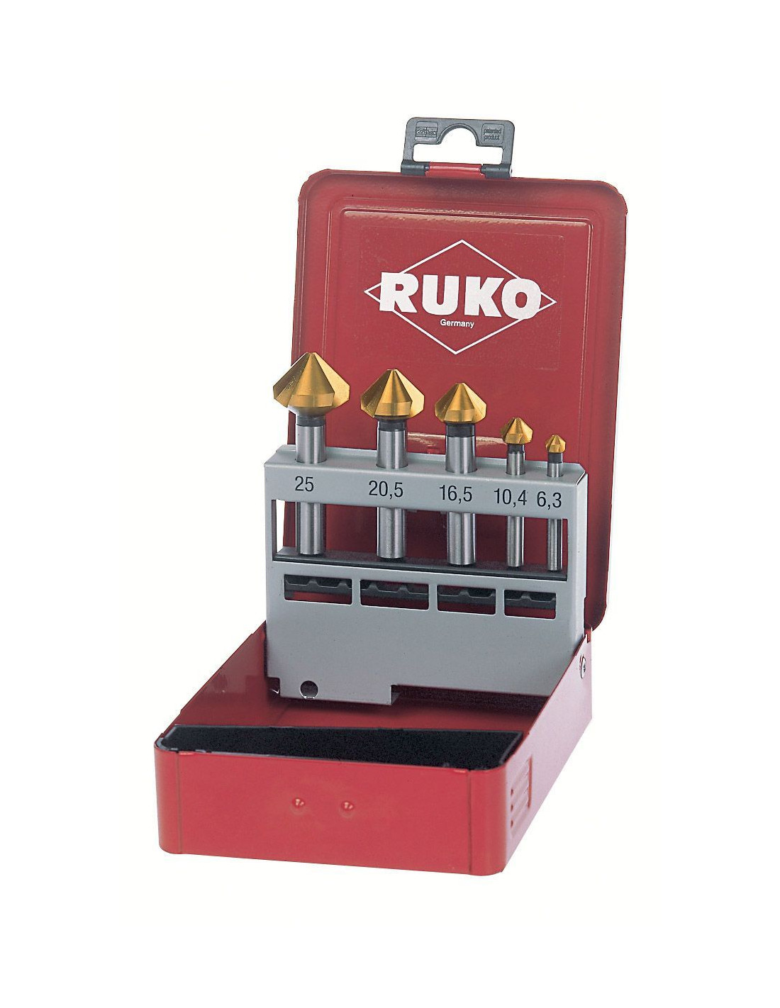 Juego de 5 avellanadores cónicos DIN 335 forma C en estuche metálico