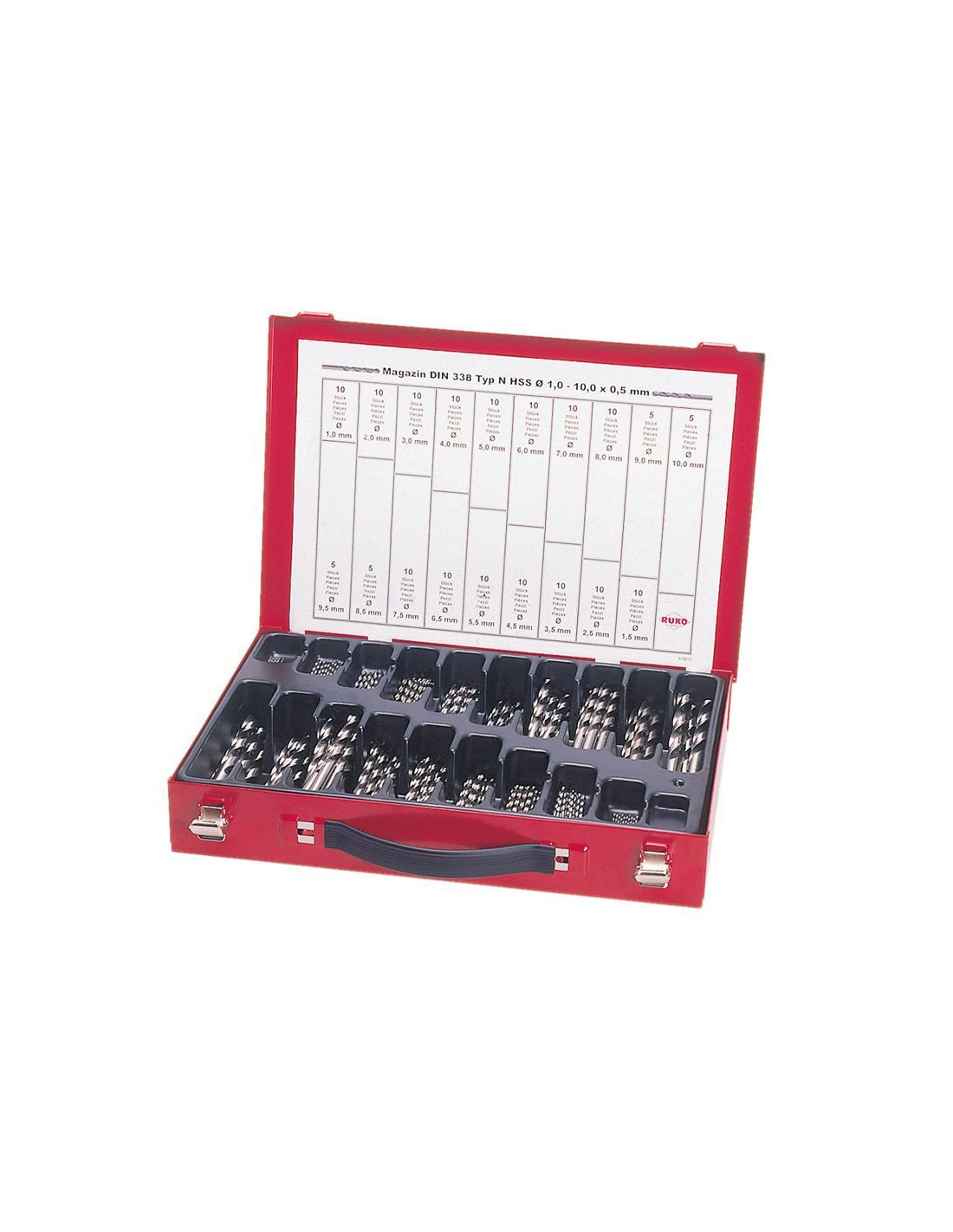 Juego de 170 brocas helicoidales HSS rectificadas en caja metálica