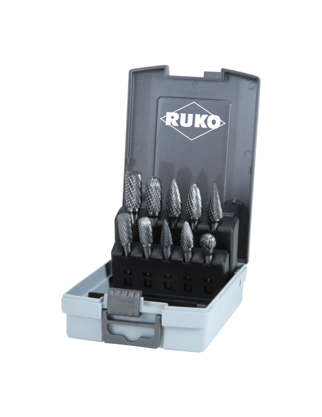 Juego de 10 fresas rotativas de carburo de tungsteno en estuche de plástico