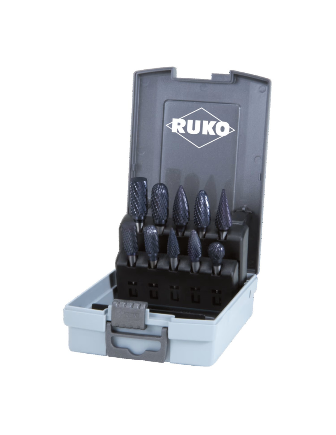 Juego de 10 fresas de metal duro TiCN en estuche de plástico