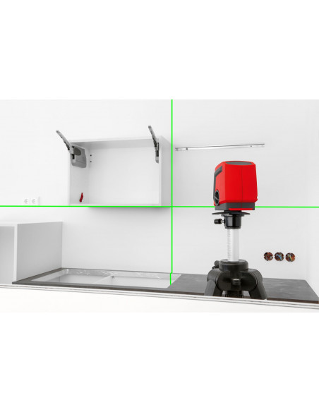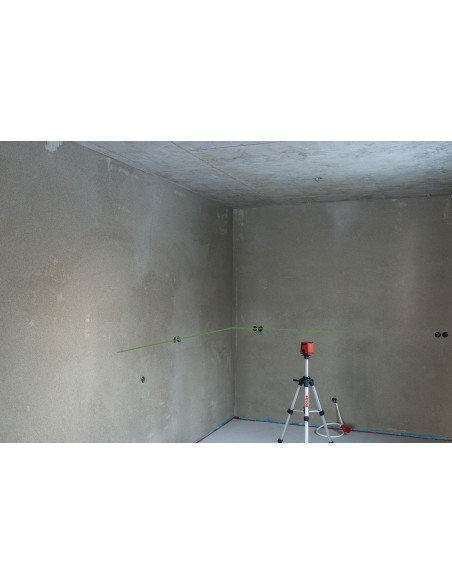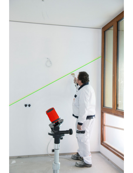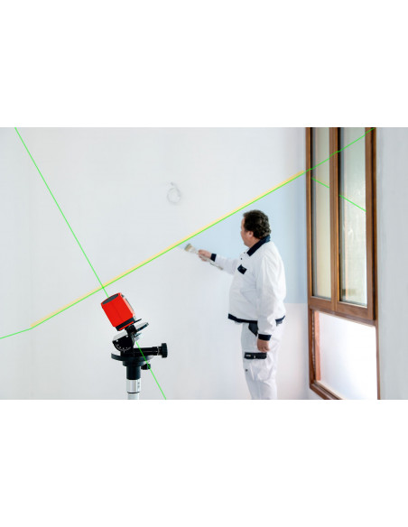 Nivel láser de líneas con rayo verde de tecnología REAL GREEN para una mejor visibilidad en ambientes de alta luminosidad. Pie de apoyo rotativo para una alineación sencilla y rápida de las líneas. Función de impulsos conmutable para usar el receptor opcional REC LGD0 en condiciones de mala visibilidad.