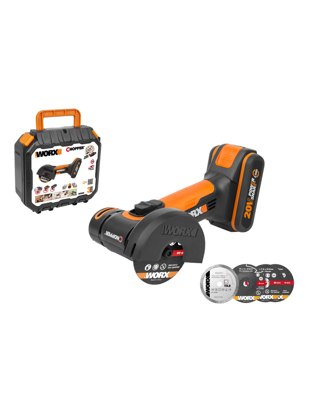 Worx WX801 - Mini Amoladora "Chopper" 20V 2.0Ah (1 bat)