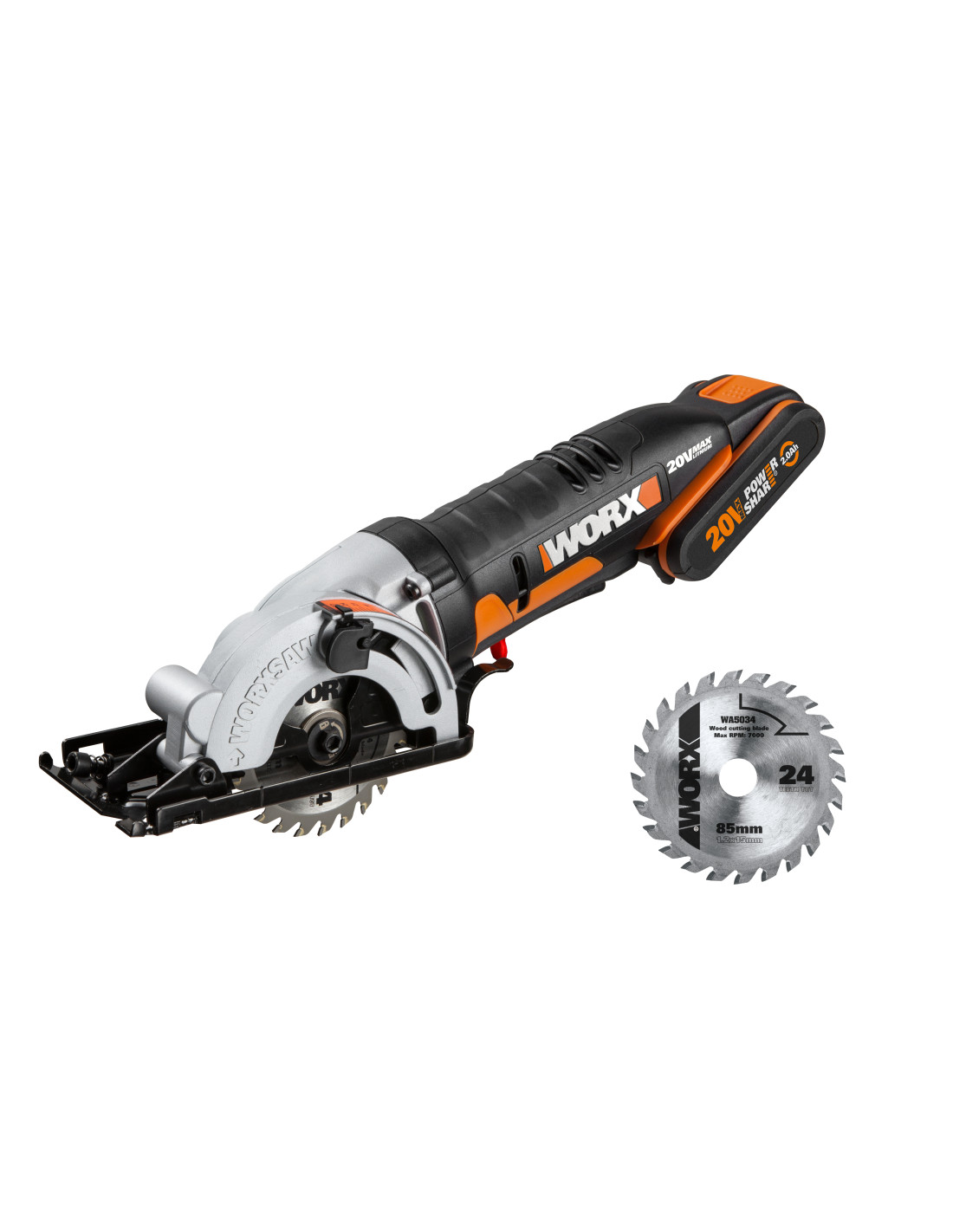Worx WX527 - Sierra circular Worxsaw 20V (1bat 2.0Ah)